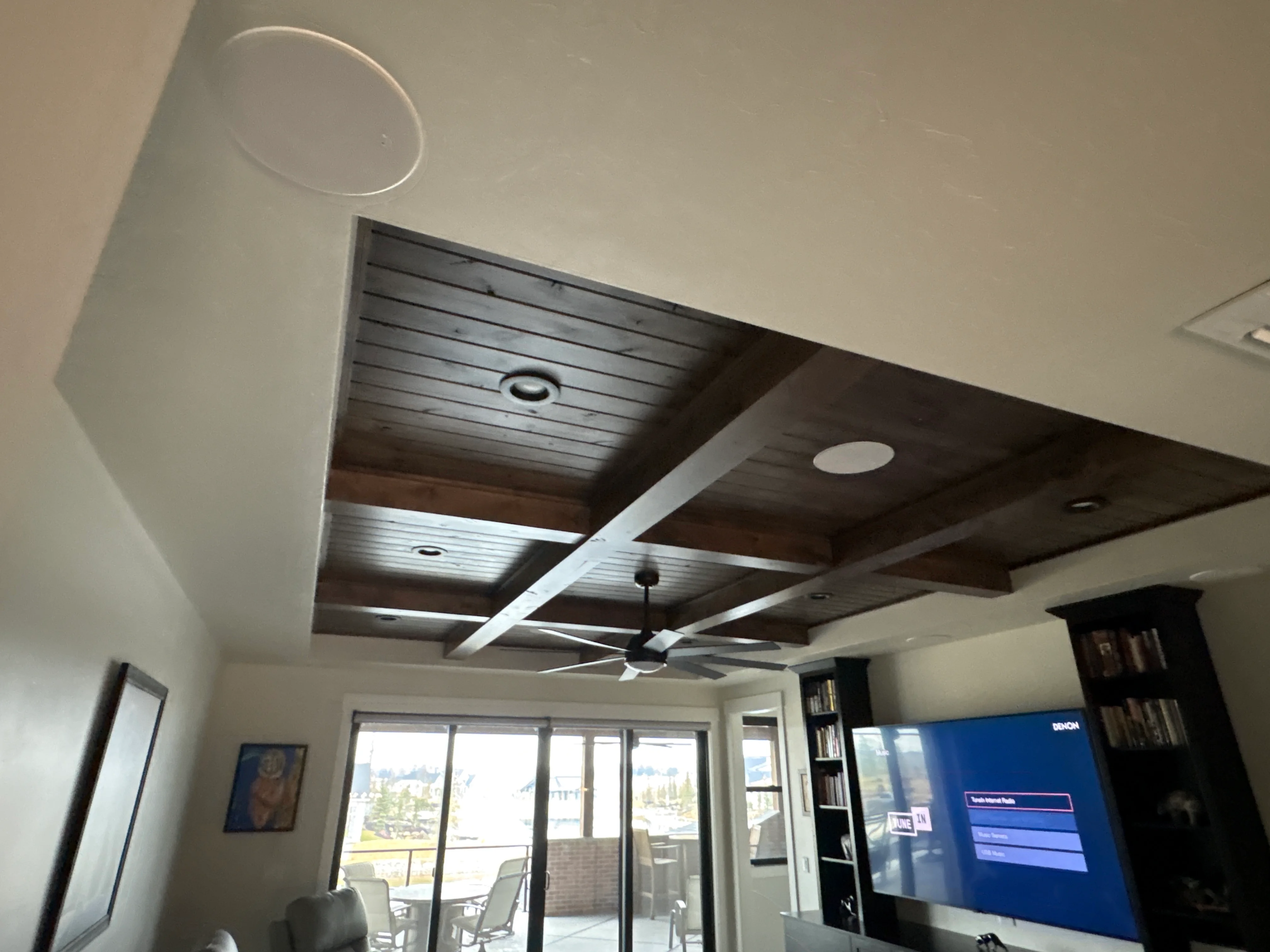 This project in Eagle, Idaho featured a comprehensive upgrade of in-ceiling audio and TV sound integration. The team replaced existing in-ceiling speakers with premium KEF CI Q Series models, renowned for their ultra-thin bezel and advanced Uni-Q driver technology. These speakers were seamlessly integrated into the home’s architecture, providing crisp, natural audio that fills the space with minimal visual footprint—a perfect harmony of design and performance. In addition to the ceiling speakers, a Sonos Arc/Arc Ultra soundbar was mounted to the homeowner’s TV, professionally installed and configured for immersive, cinematic sound. Energy-efficient wiring and setup ensured optimal audio quality throughout the home. The combination of state-of-the-art speaker swap-outs and the Sonos soundbar delivers an elevated listening experience, offering clear dialogue, deep bass, and effortless streaming. This project exemplifies top-tier craftsmanship in modern home audio solutions.